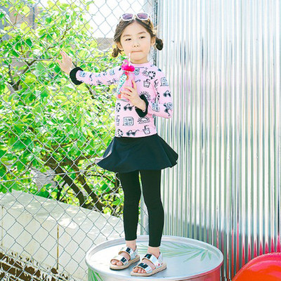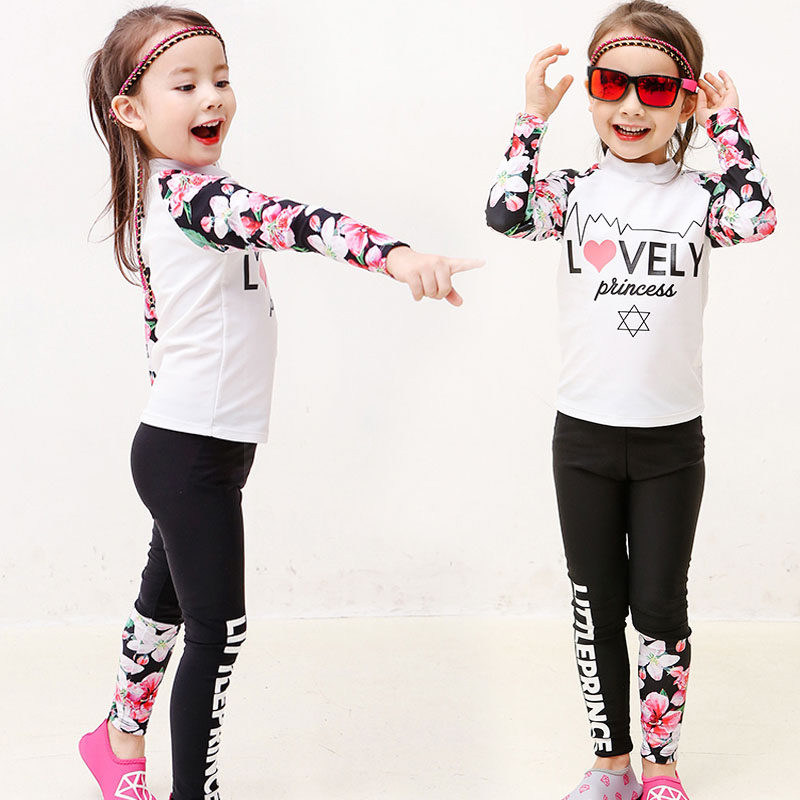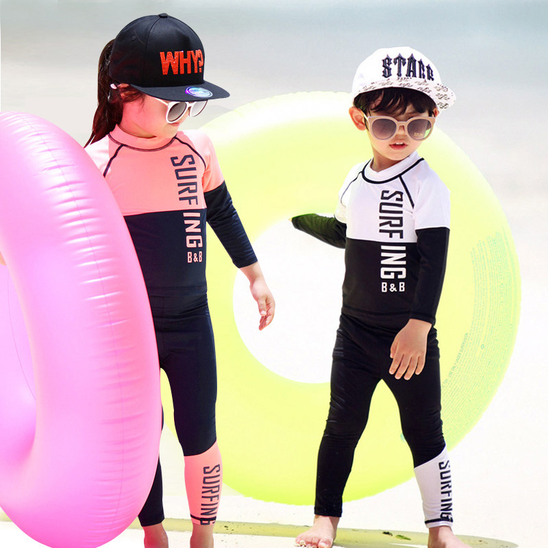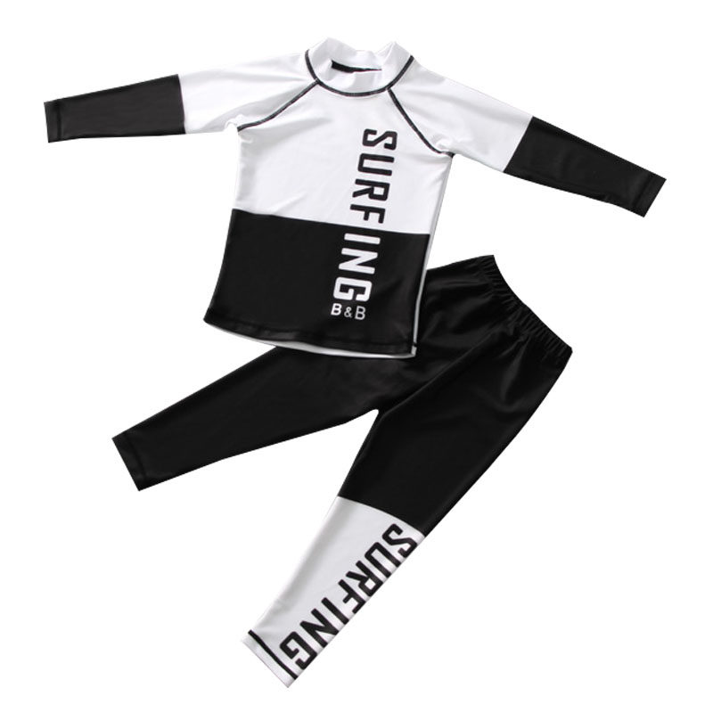 Boys' long-sleeved swimsuit two-piece middle-aged children's girls trousers sunscreen suit students Korean version of children's swimwear quick-drying