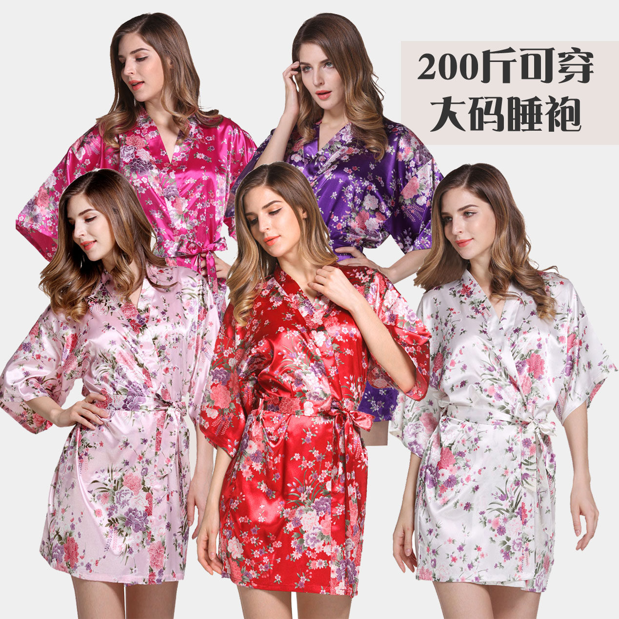 200 catties large size bridal dressing gown wedding bridesmaid robe makeup robe retro beauty salon bathrobe fat MM pajamas nightgown