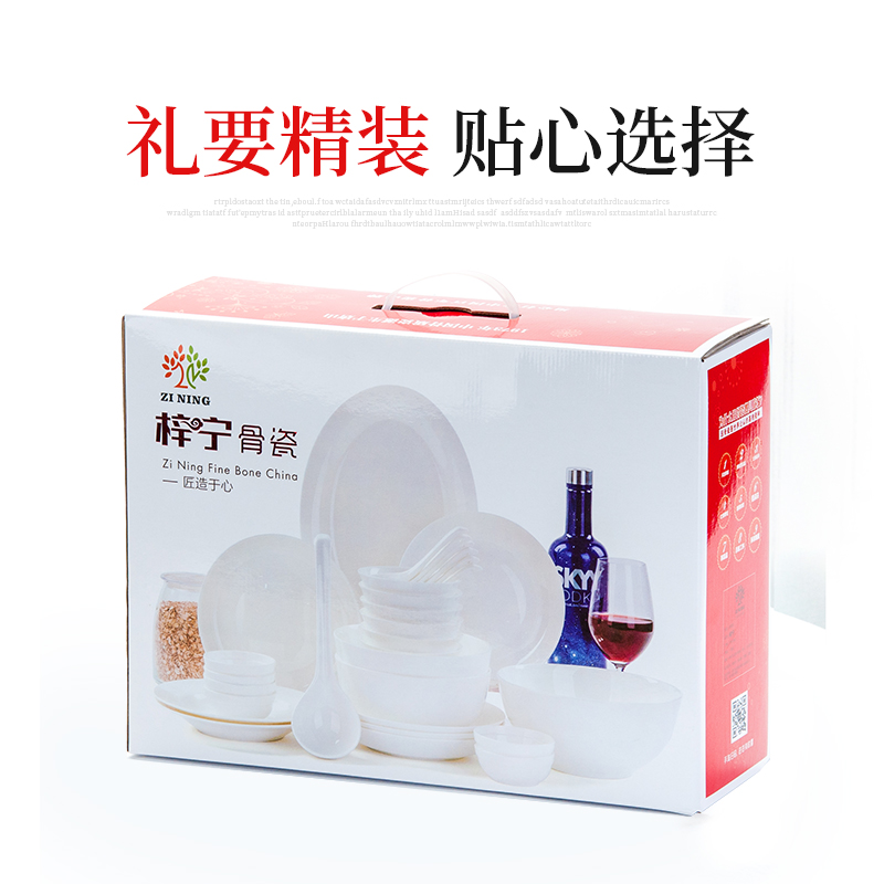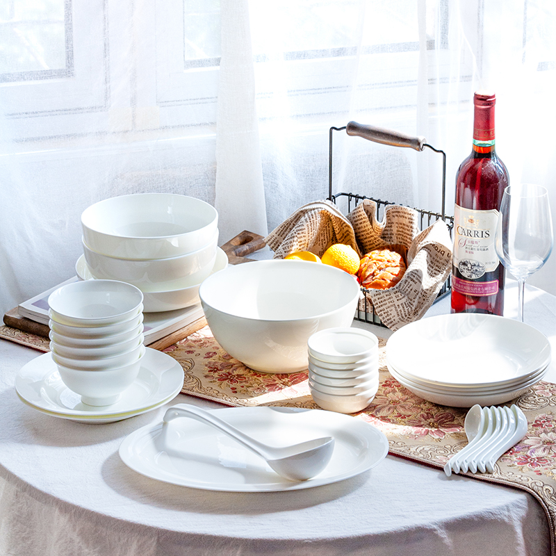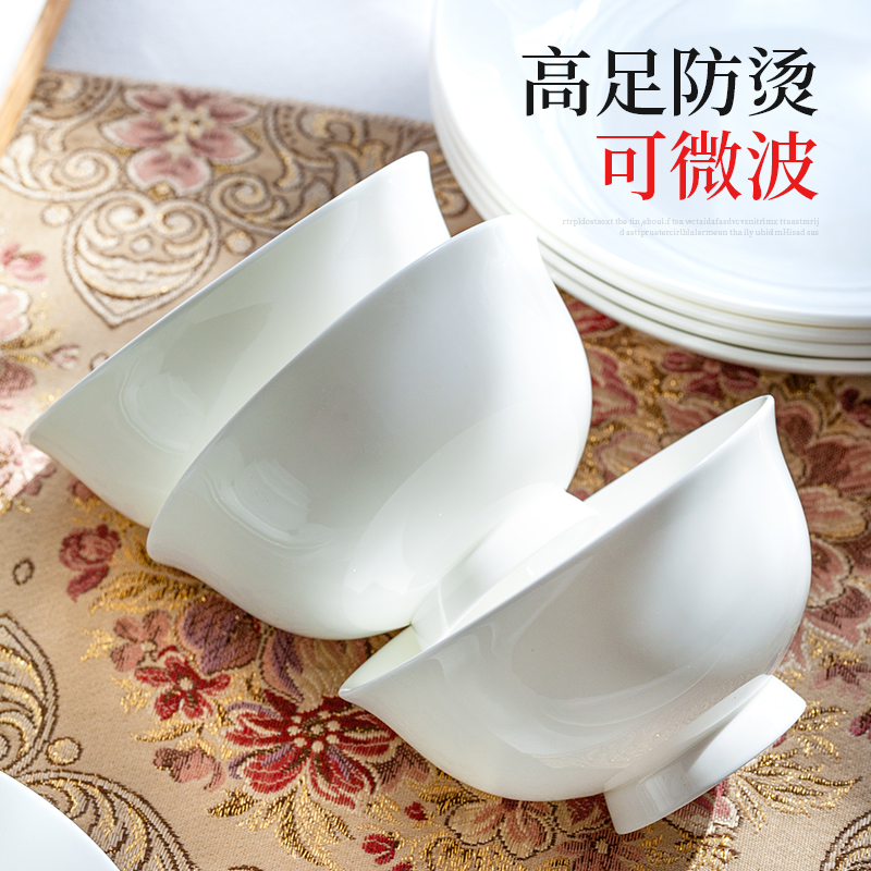 Pure White Bone China Cutlery Suit Brief Chinese Nordic Creative Ceramic Soup Noodle Bowl 30 Head 6 People Home Bowl Dish
