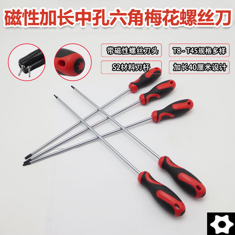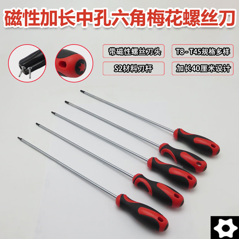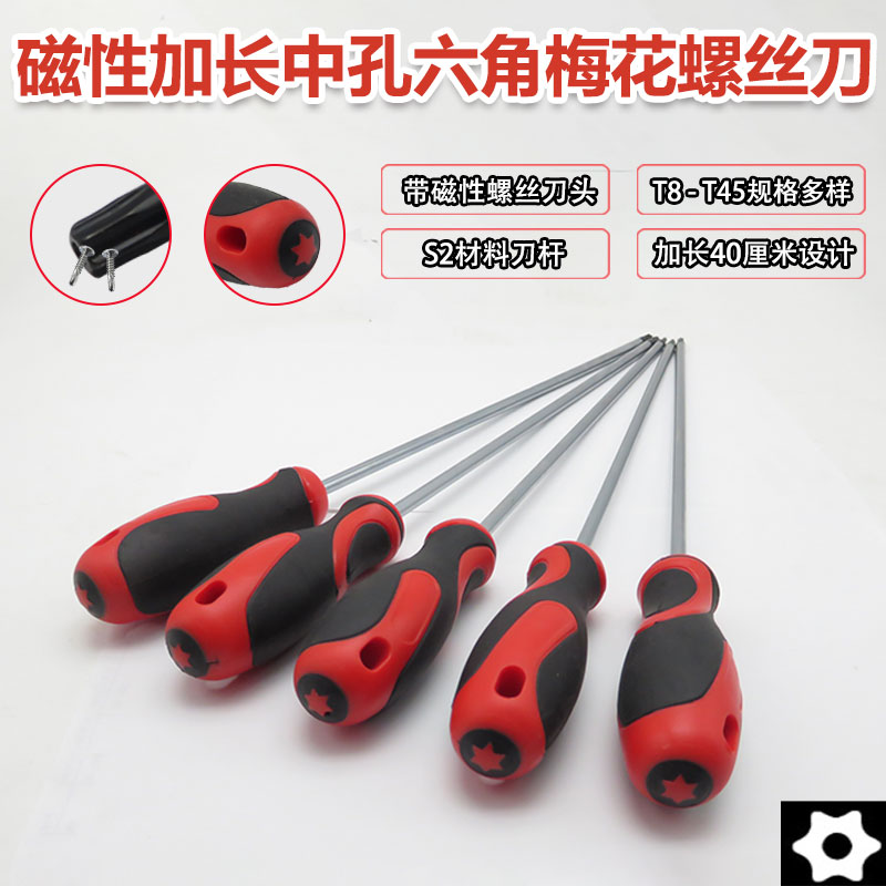 Medium-hole magnetic lengthened inner hexagonal plum screwdriver star-shaped flower-shaped screwdriver rice word with hole screwdriver T-shaped batch head