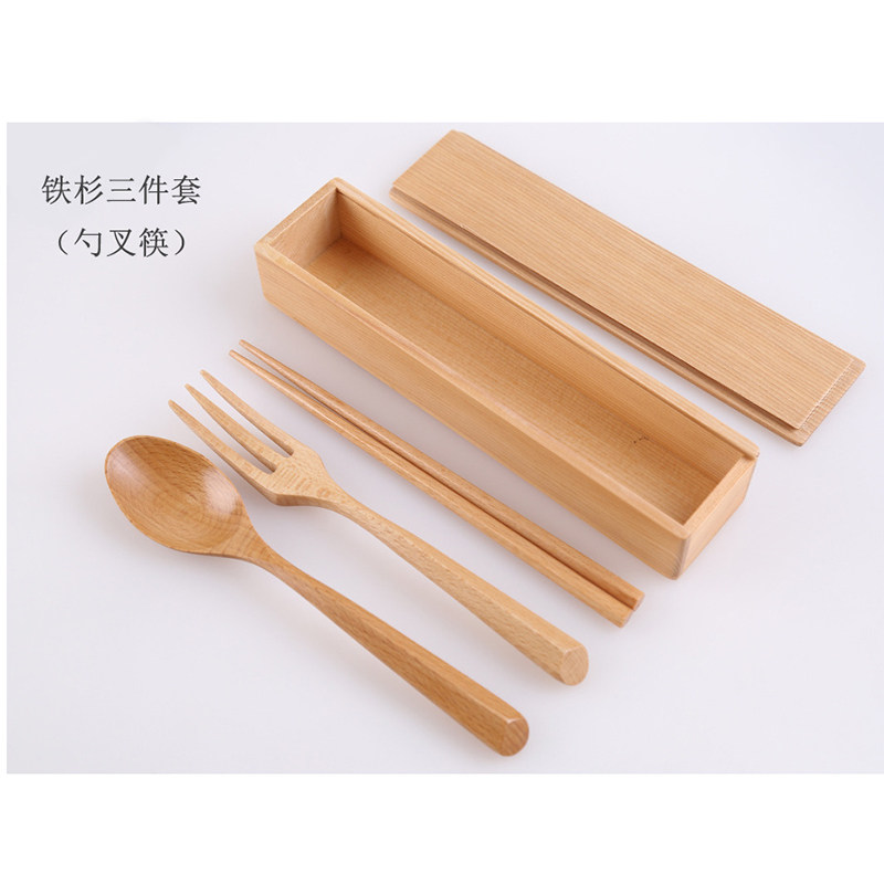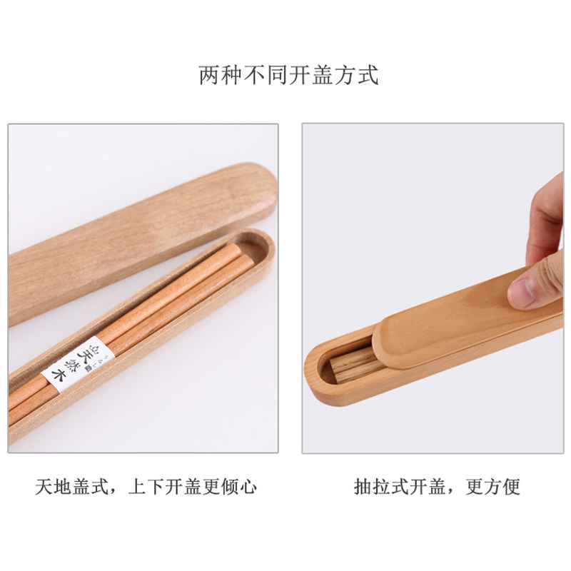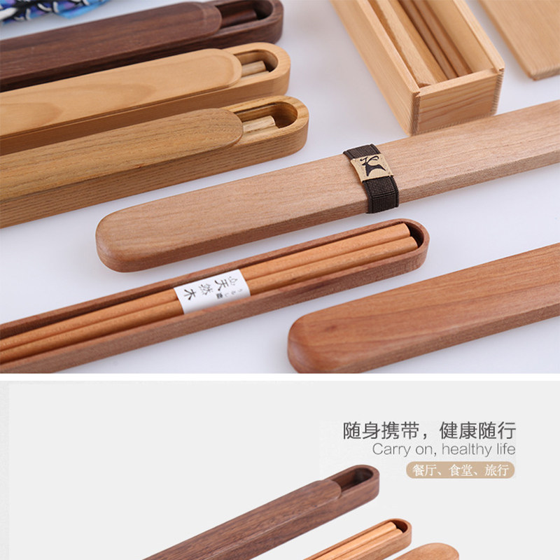 Japan-style Wooden Cutlery Box Suit Chopsticks Spoon Fork Three-piece Portable Suit Black Walnuts Wood Cherry Wood Solid Wood Box