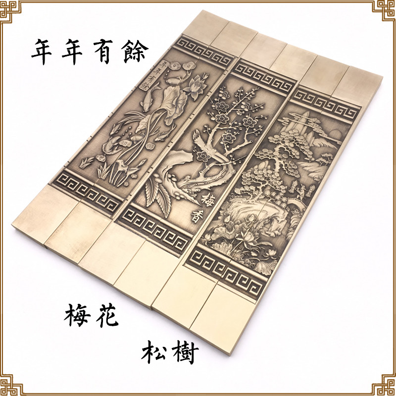 Large number of solid brass reliefs imitating the ancient lotus town paper strip Brush Pen paper Town ruler Wenfang Four Treasure