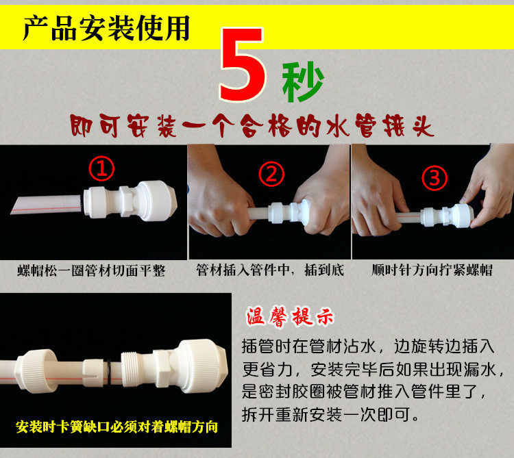 Hot-melt-free PPR inner wire elbow quick connector straight plug-in type 202532PPR water pipe PE aluminum-plastic pipe glue-free and iron-free