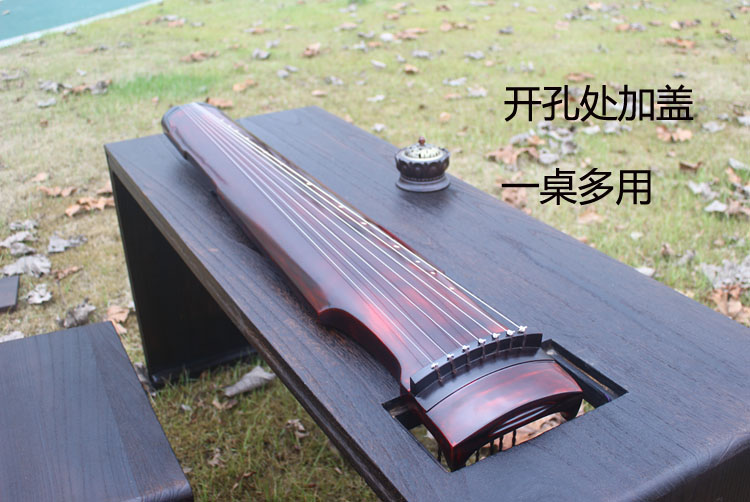 Burned tung wood guqin table mortise and tenon integrated teacher dedicated guqin table resonance table guqin table stool widened and lengthened