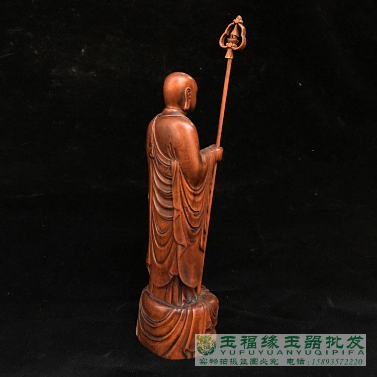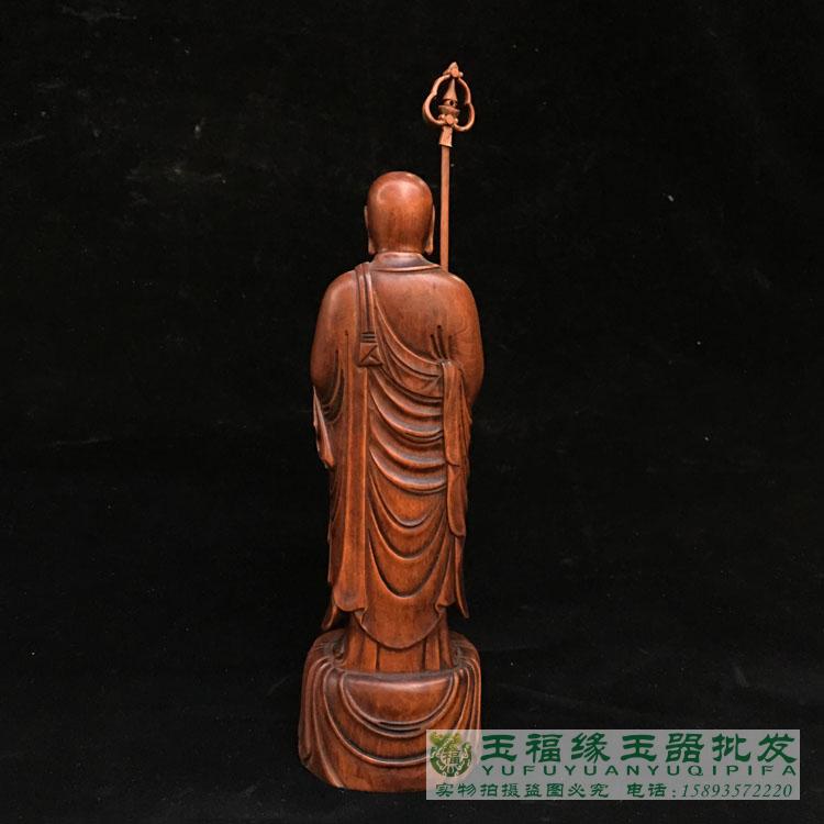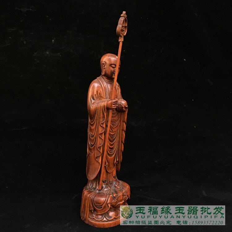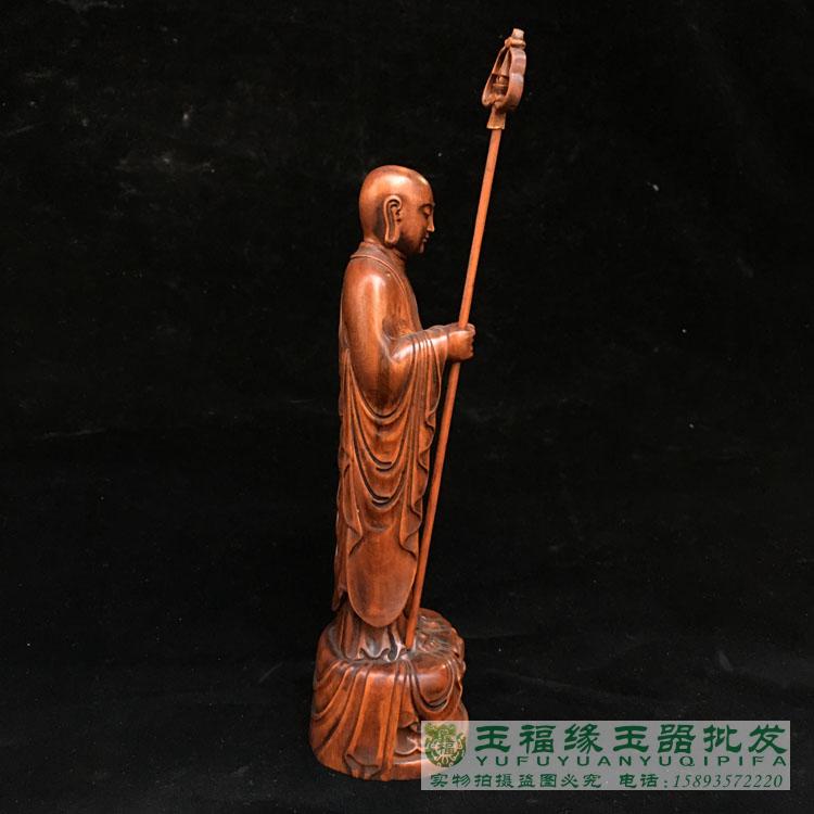 Ancient play of antique wood carvers yellow poplar wood carvings of the Bodhisattva site Tibetan Buddhist statues stand like a monk at the mercy of the Tang monk