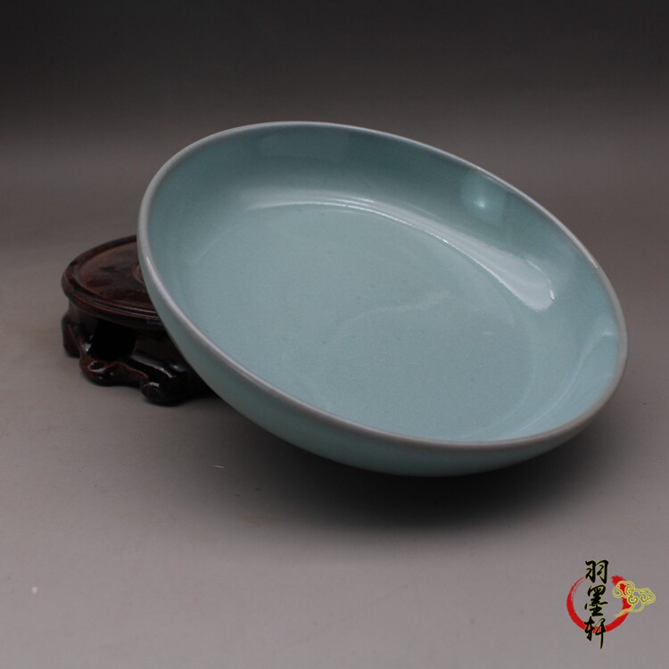 Antique Porcelain Song Dynasty Ru Kiln Sky Blue Glaze Crack Glaze Pen Wash Small Plate Butterfly Antique and Antique Ceramic Collection