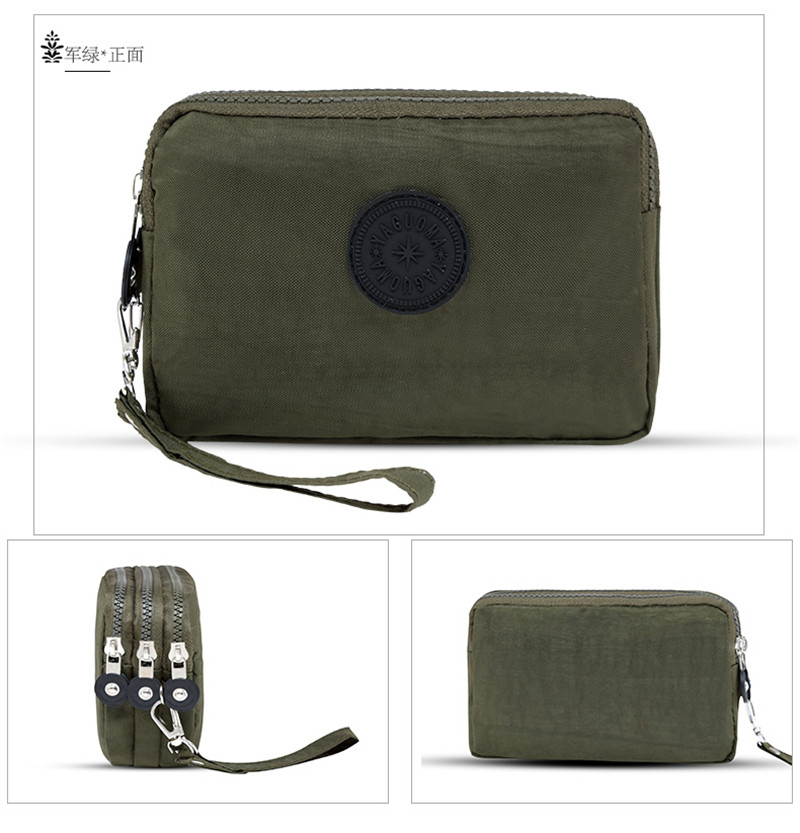 Yagoma's new three-zipper coin purse Multi-layer bag Large screen mobile phone bag Washable cloth leisure coin bag