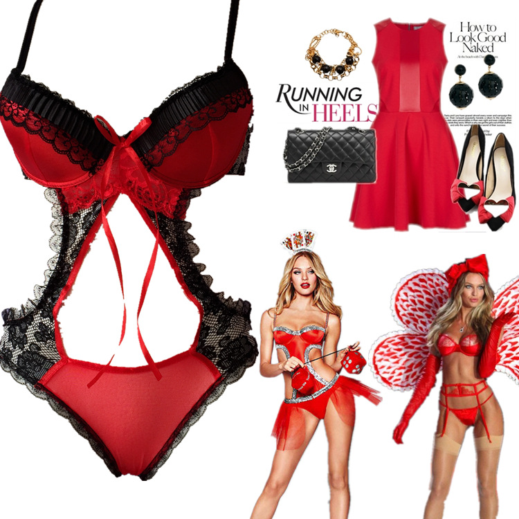 New red sexy one-piece lingerie emotional sultry suit with bra backless three-point nightclub women
