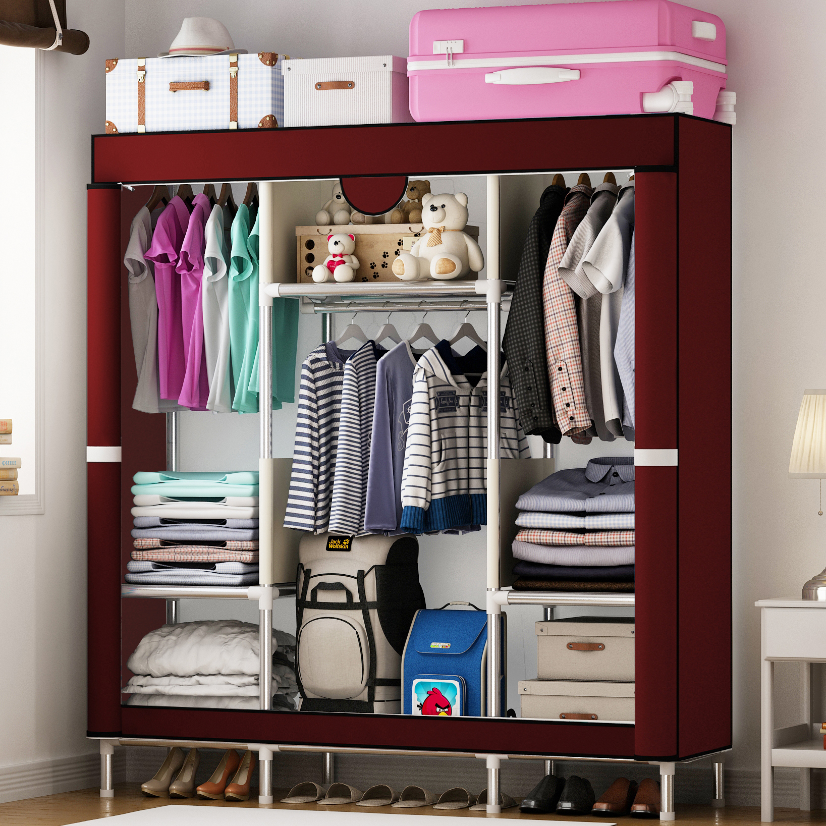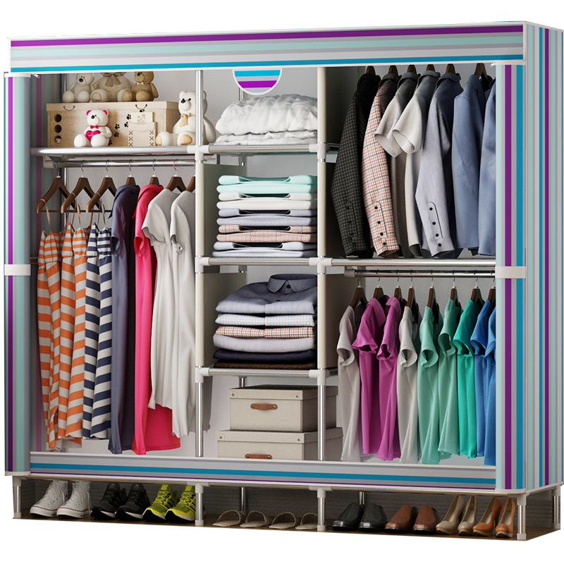 Simple waterproof Oxford cloth wardrobe large steel pipe thickened reinforced double compartment steel frame assembly fabric wardrobe