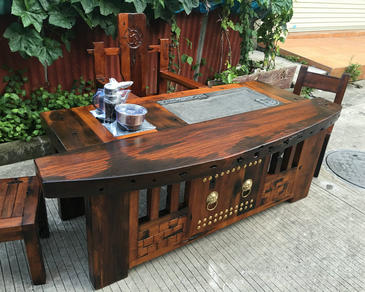 Old boat wood arched tea table and chairs combined antique solid wood furniture Chinese living room tea room tea table tea table tea table and chairs