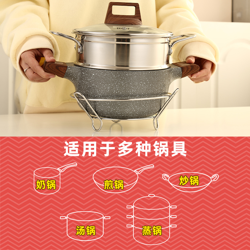 Stainless steel wok rack kitchen simple shelving heat insulation and burn-proof casserole cushion frying pan containing layer shelving table noodle placing pan frame