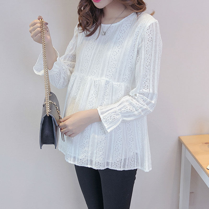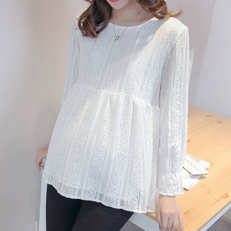 Pregnancy Woman Dress Spring Dress Lace Pregnant pregnant woman blouses T-shirt with T-shirt dolls Long sleeves Undercoat Spicy Mother Short blouses