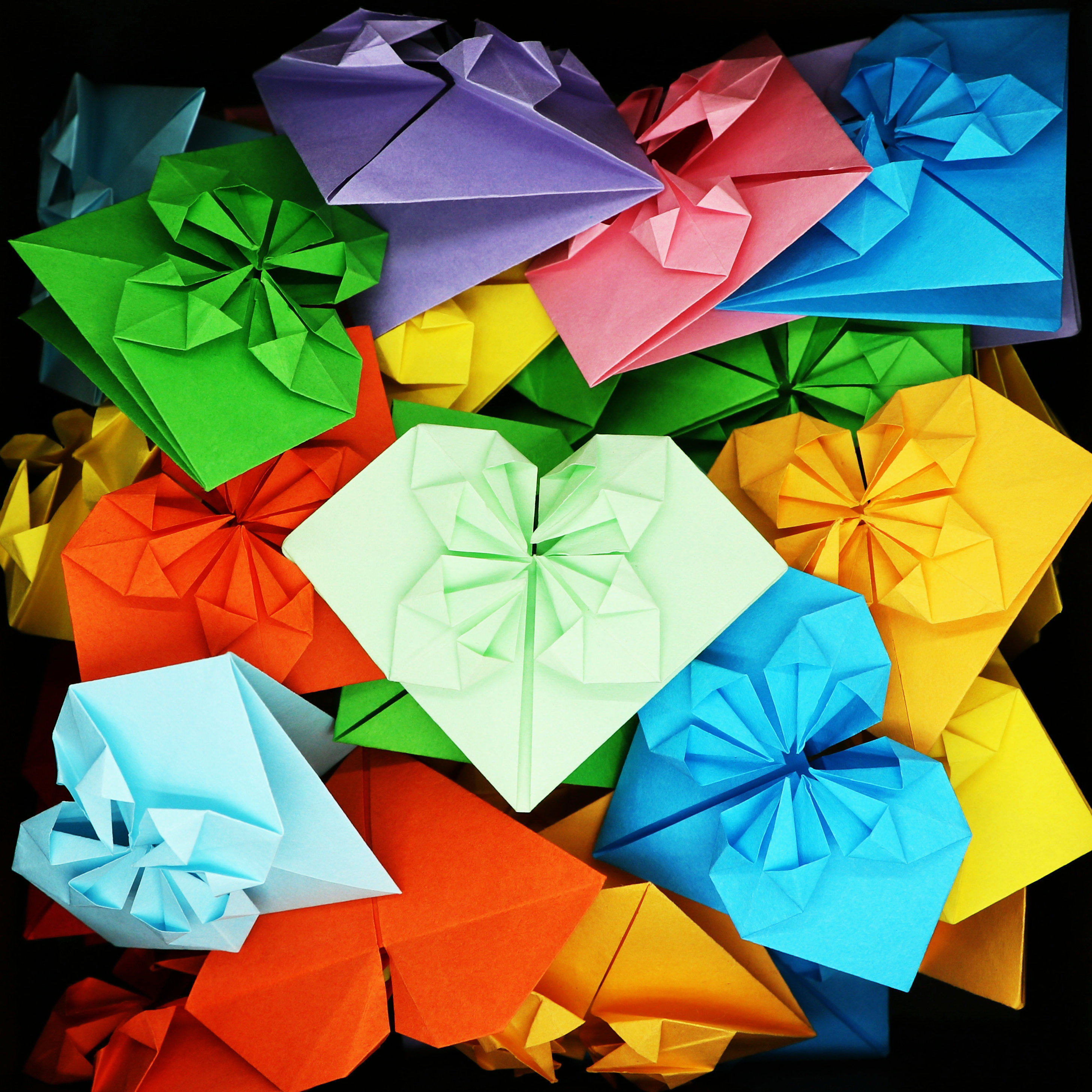 Rectangular origami heart handmade paper heart blossom colored paper