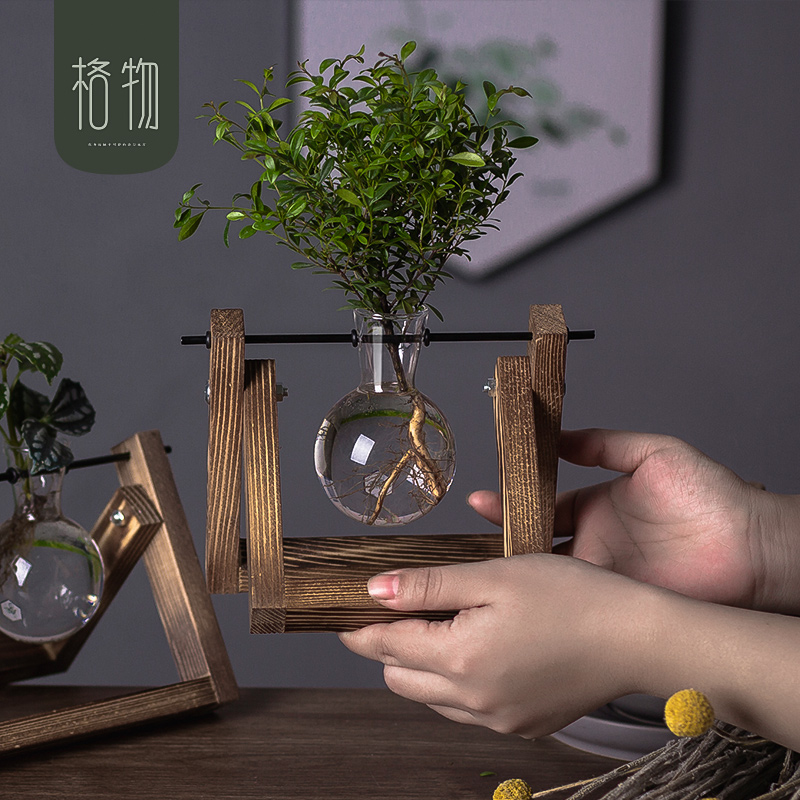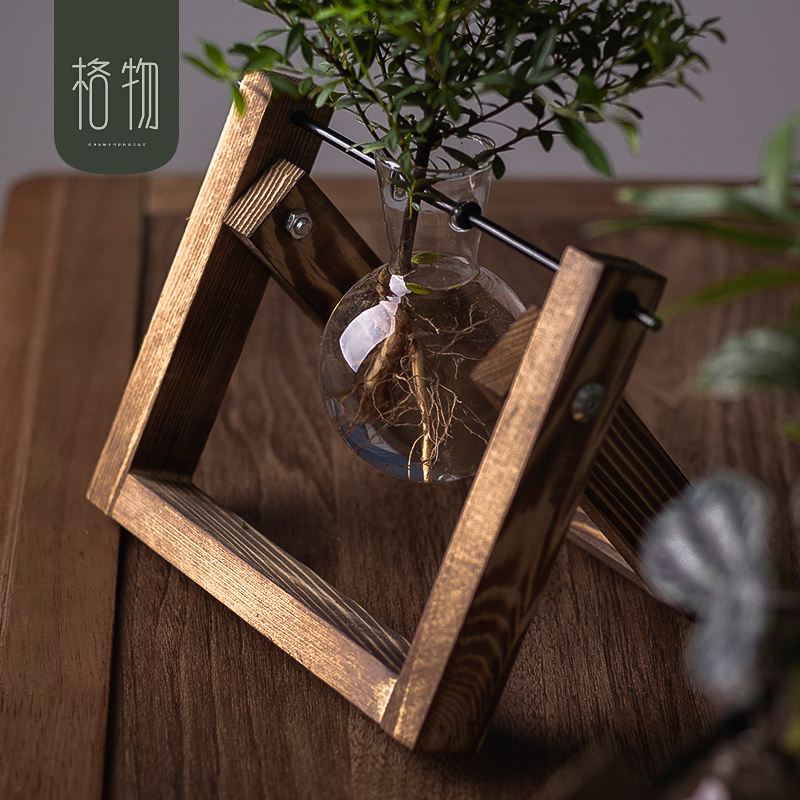 Creative wooden frame Transparent glass flower arrangement container Flower plant