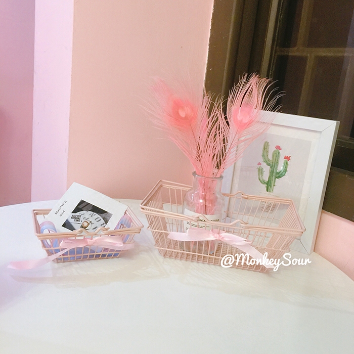 Teenage Girl Hearts Desk Swing Pieces Pink Iron Basket Pink butterfly knot iron basket Makeup Containing Basket Photo Background