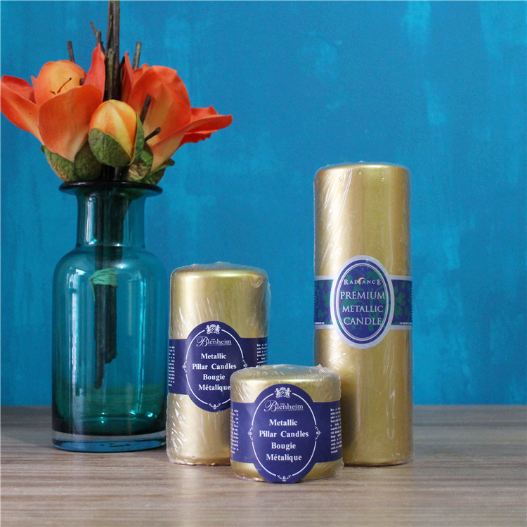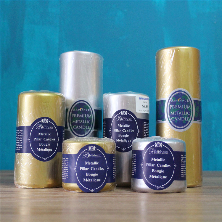Export fragrance-free coated gold silver thick candle Wide wax column-shaped tasteless candle Soft banquet romantic candle light