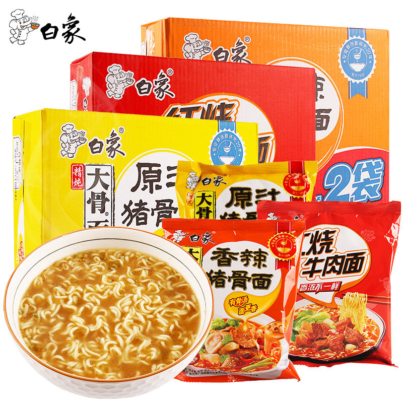 White elephant essence stewed big bone original sauce pork bone noodles spicy braised beef noodles instant noodles 24 bags of whole box wholesale