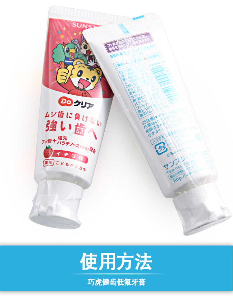 Japan Sunstar Qiaohu baby children's toothpaste baby toothpaste anti-moth strawberry grape 2-8 years old 70g