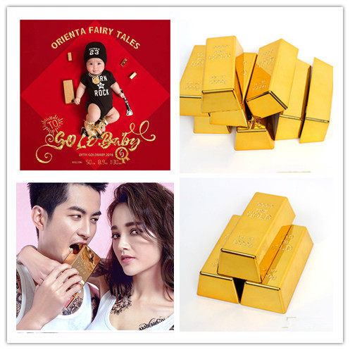 Simulation large gold bar model decorative gold nuggets ornaments Nouveau Riche gold creative photography props Photo costume funny gold bricks