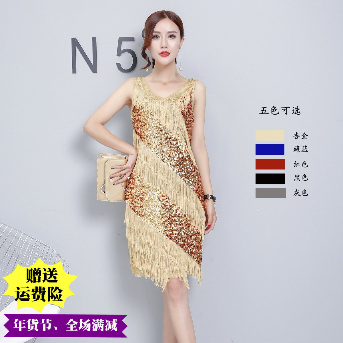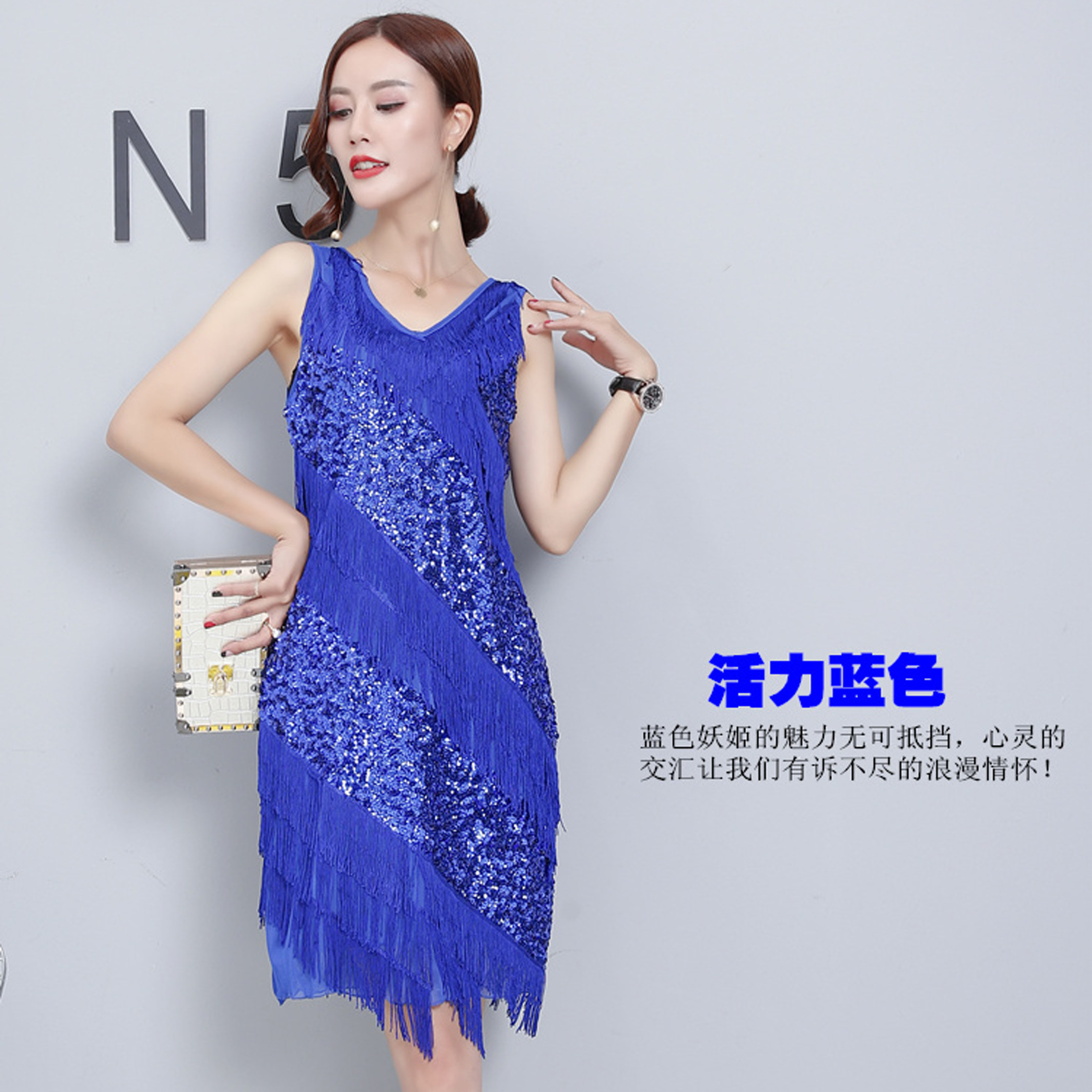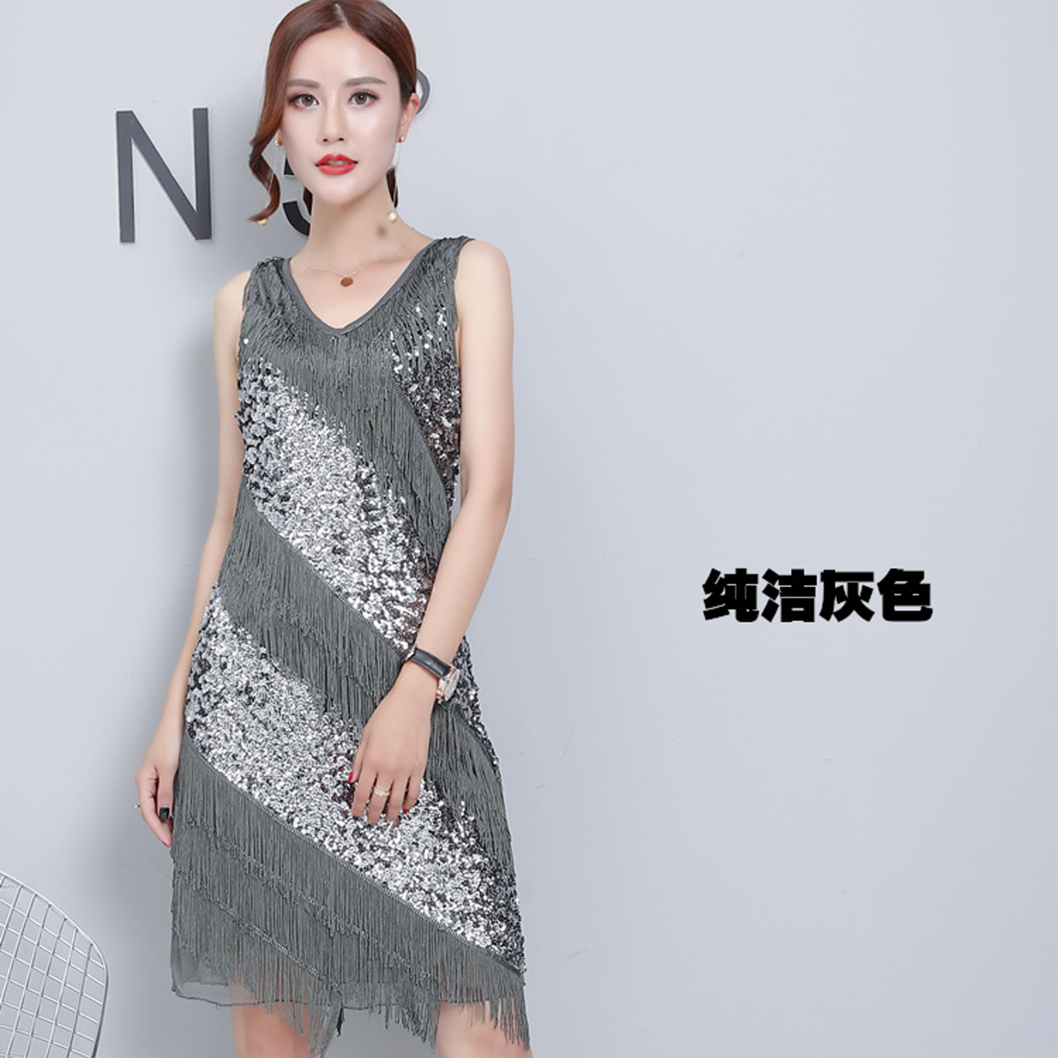 New V-neck retro Gatsby fringe dress sequins Latin dance chacha jazz dance costume women's suit - Taobao