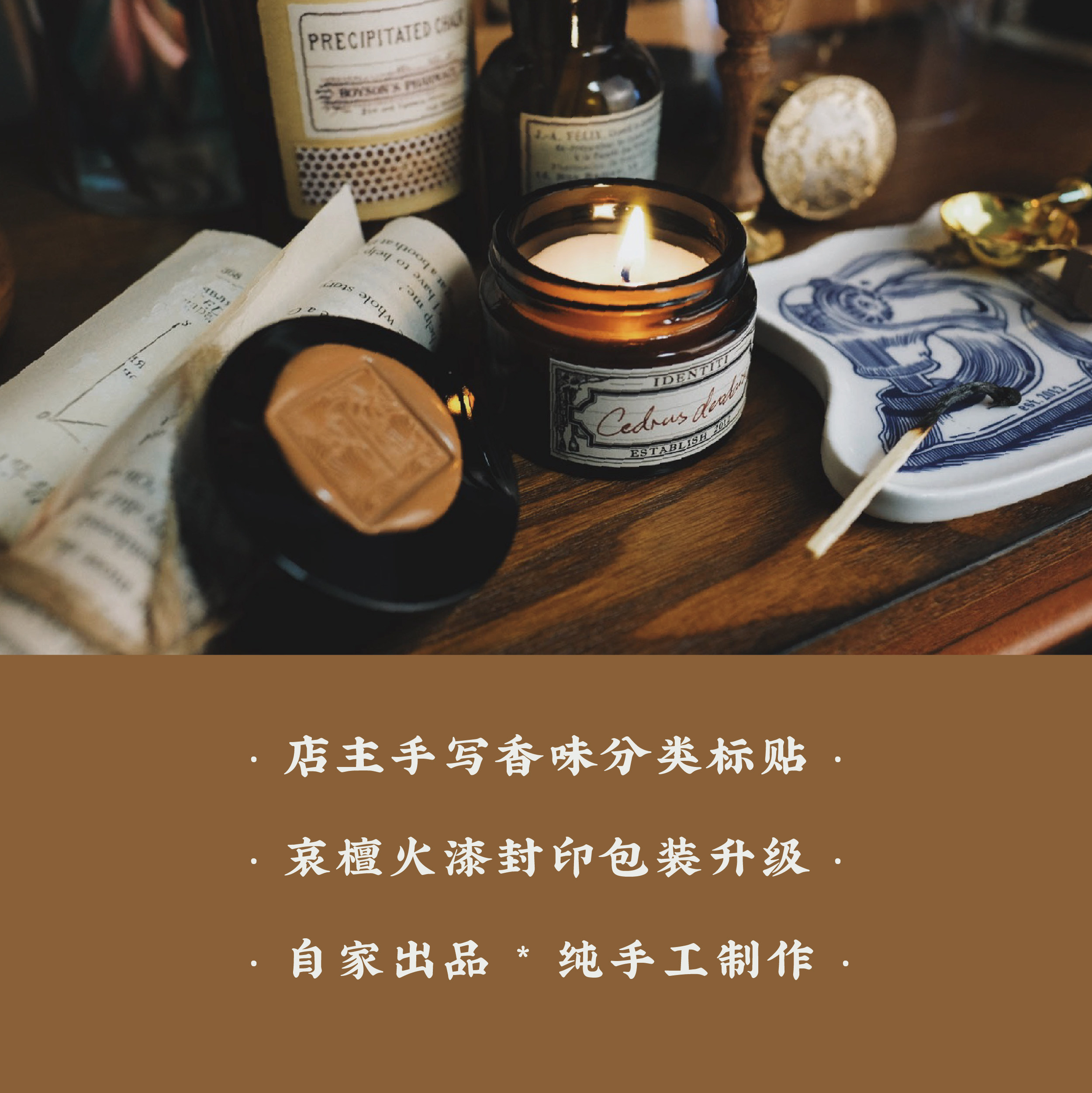 New Black Spruce essential oil scented candle "Sad Sandalwood treasure cabinet"Fire paint seal top cover handwritten label