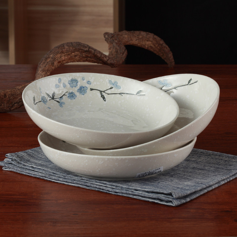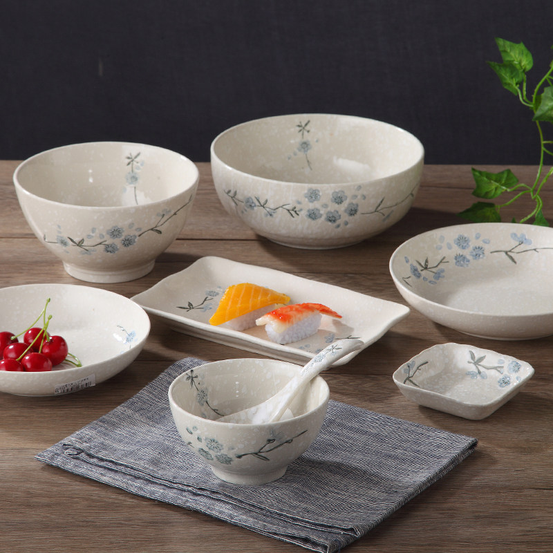 Japanese-style snow cherry ceramic tableware rice bowl fish plate noodle bowl home tableware bowl dish dish 8-person meal set