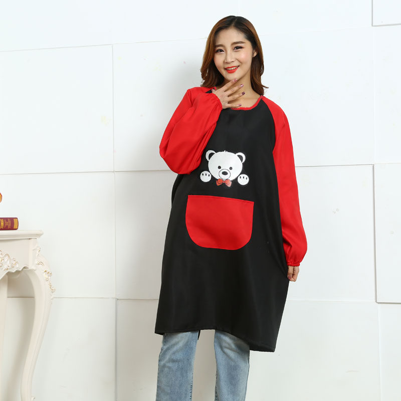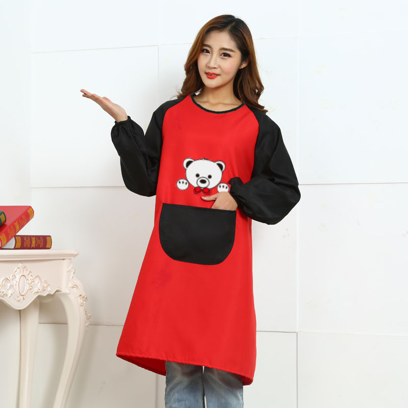 Custom long-sleeved apron Korean version of the fashion kitchen waterproof cover adult cute female work clothes LOGO printing