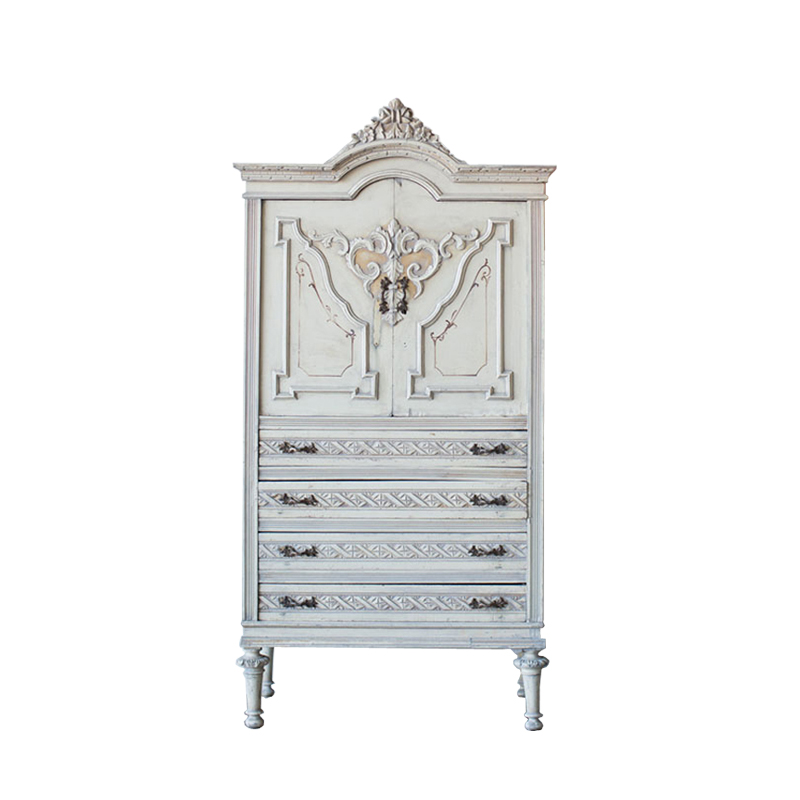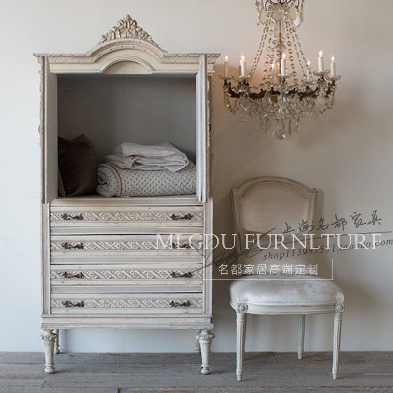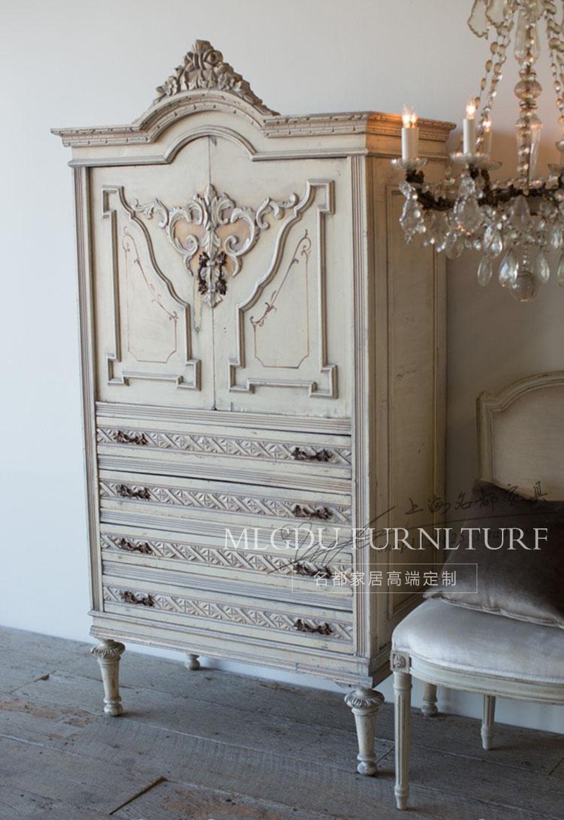 Solid Wood Double Door Wine Cabinet Wardrobe American Countryside Containing Cabinet Imitation Ancient White Made Old Bull Bucket Carved Display Cabinet Bookcase