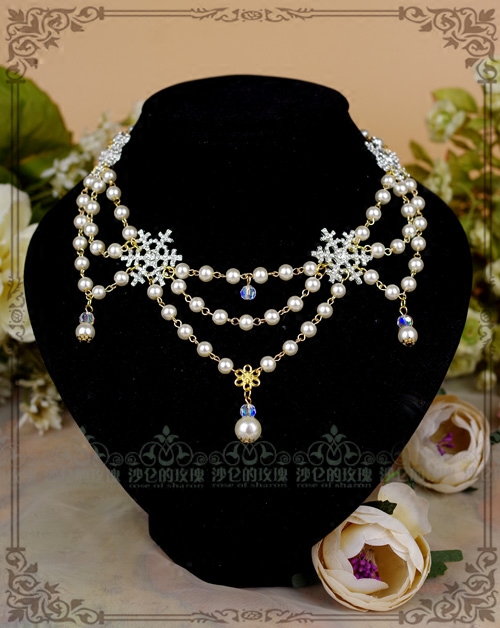 Original * Snow Night Miracle * Snowflake Pearl Short Necklace-Hair Dressing-Multi-use CLA Department Lolita accessories