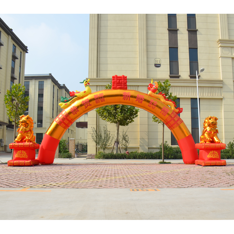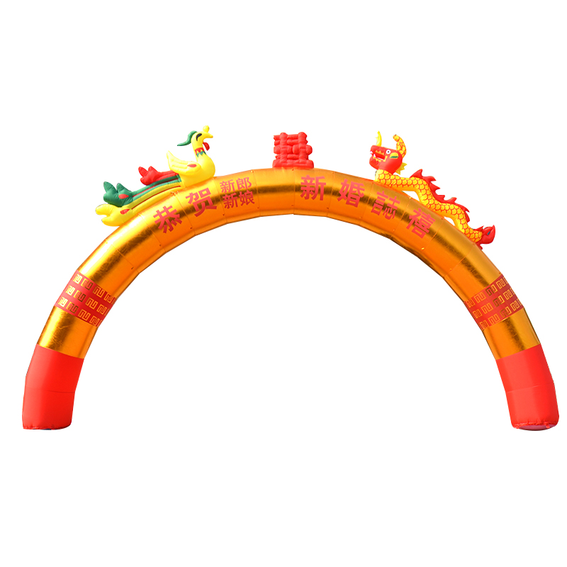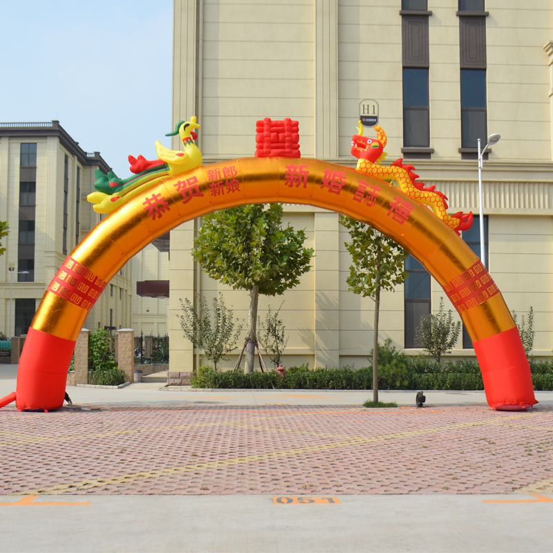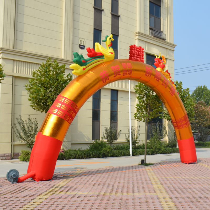 8 10 12 m Inflatable Arch Gold Opening Celebration Double Dragon and Phoenix Air Model Wedding Rainbow Door Air Arch