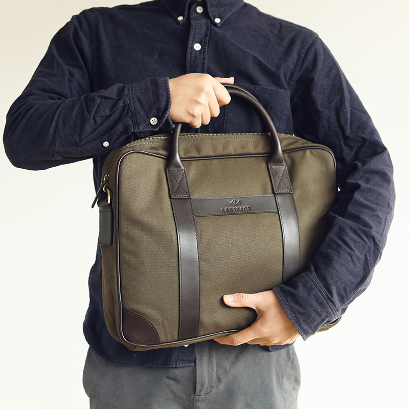 Blue leather goods men's large capacity fashion handbag leather with canvas bag casual business messenger bag light men's bag