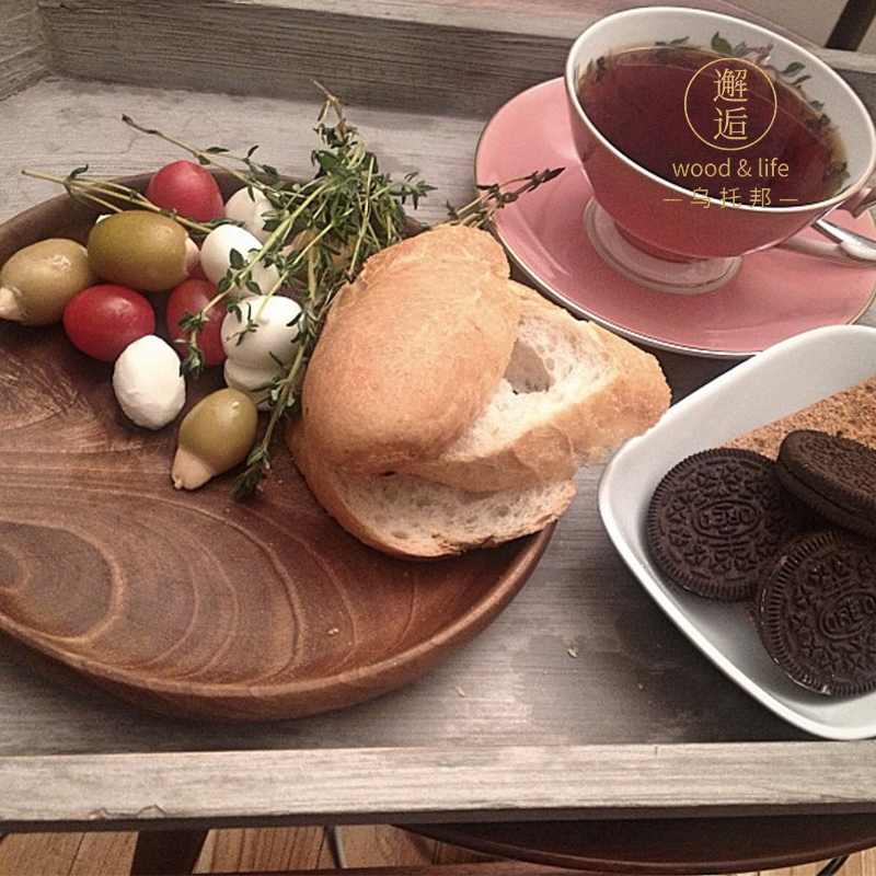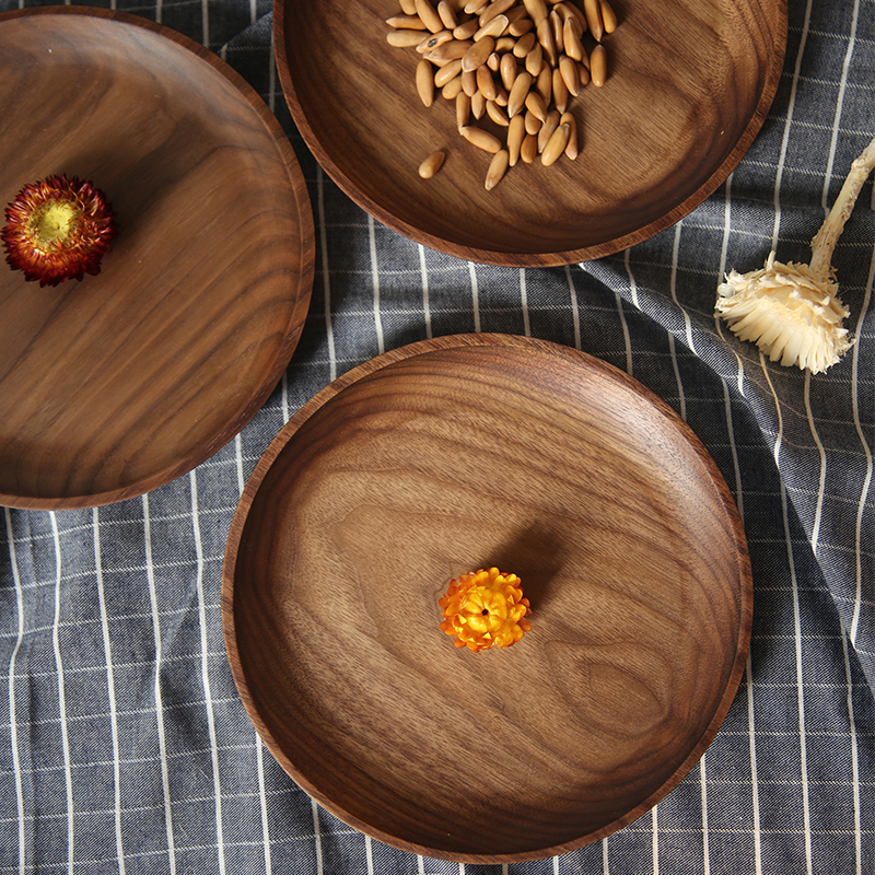 Black Walnuts Wood Whole Wood Round Fruit Pan Coffee Hall Refreshment Cake Nursery Solid Wood Dry Fruit Pan Tea Tray