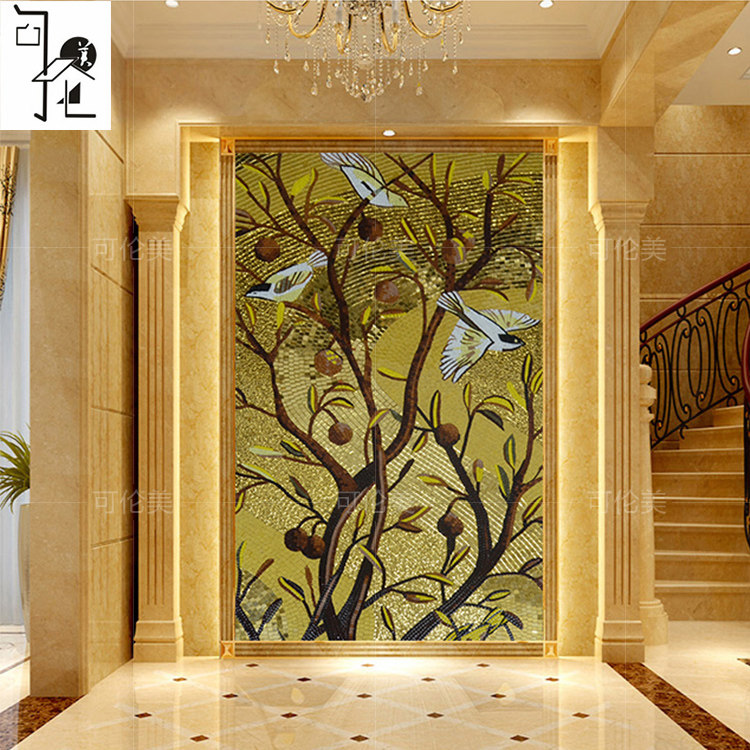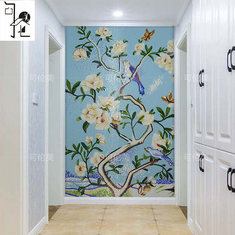 Art Crystal Glass Mosaic Parquet Background Wall Country Painting Flowers Birds Chinese Style Eurostyle Genguan Living-room Dining Hall Cut Painting