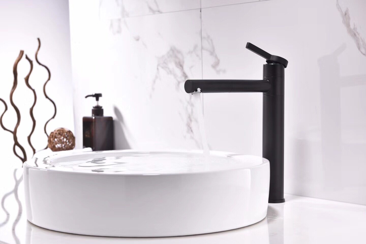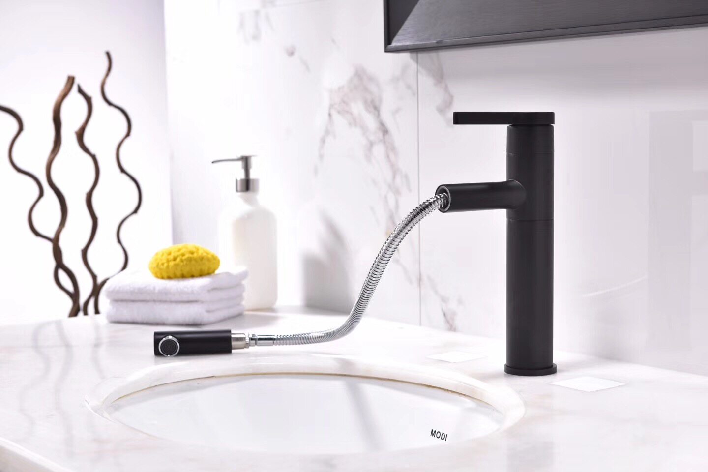 All Copper Basin washbasin hot and cold rotatable bathroom faucet black pull basin faucet toilet
