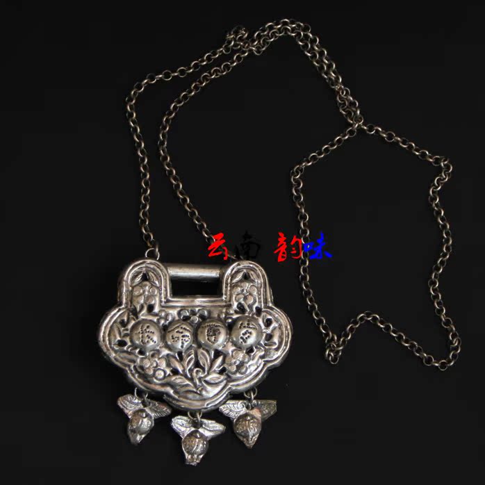 Ethnic style jewelry hundred locks old handmade classic Miao silver necklace long life lock safe lock retro long life hundred years old