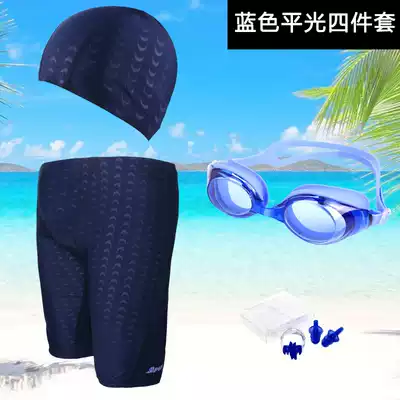 Black flat 4-piece blue flat 4-piece black electroplated 4-piece set Blue-plated 4-piece set black pants swimming cap blue pants swimming cap blue pants swimming cap black swim pants