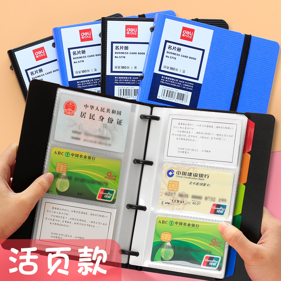 Deli card business card book Large capacity business card book business transparent men's and women's portable business card holder Storage business card bag Portable men's high-end membership credit card multi-card card book