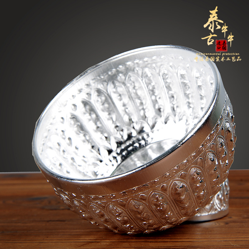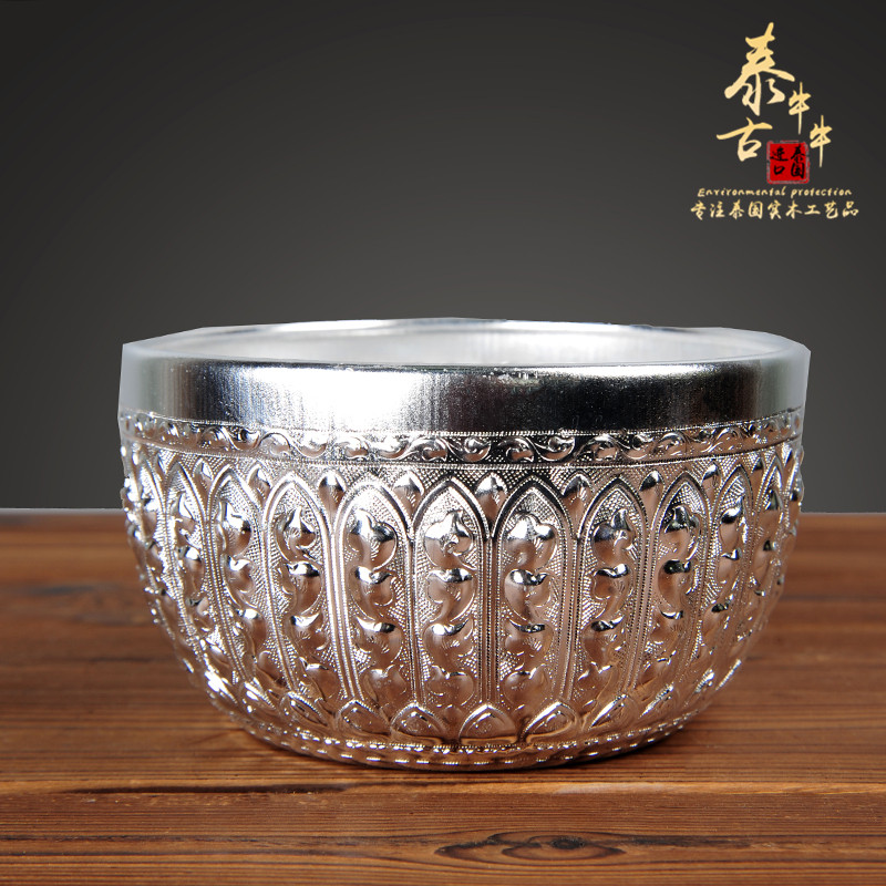 Tin bowl Thailand silver Southeast Asian creative tableware dining room hotel spa fruit plate decorative bowl without cover desktop storage