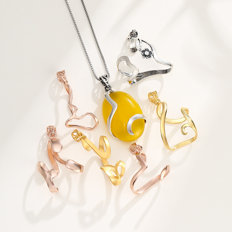 925 pure silver with shape adjustable pendant empto woman irregular 18K gold pendant tosses wax amber green pine cao-Taobao