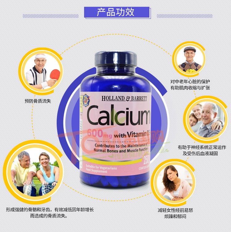 Holland & Barrett Calcium VD Vitamin D3 Calcium Tablets for Students, adults, Middle-aged and old men and women 250 tablets