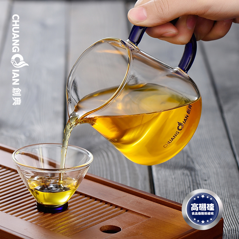 Create code heat-resistant glass fair cup thickened kung fu tea set tea leak set side handle male cup large tea sea tea dispenser
