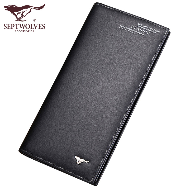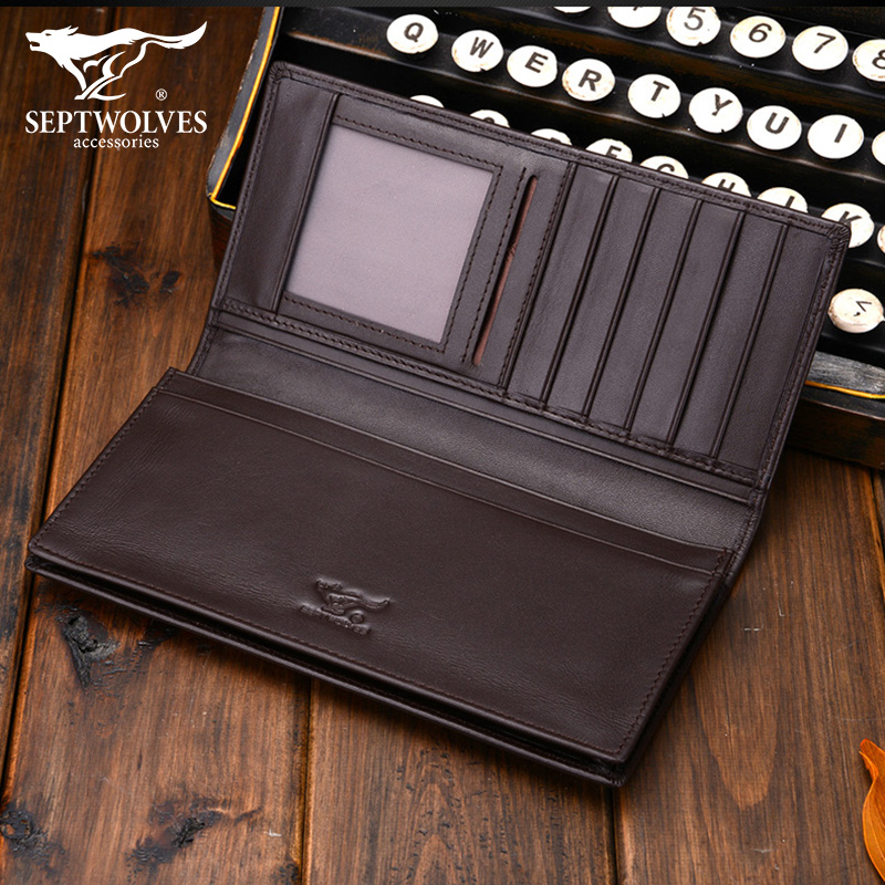 Seven Wolves Wallet Genuine Leather Long Version Youth Money Collet Layer Cow Leather Business Men's Ticket Clip chain Multi-location Korean version