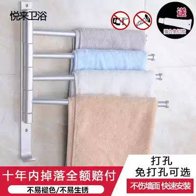 Punch-free space aluminum movable towel bar Rotating towel bar three-pole four-pole bathroom powder room towel rack