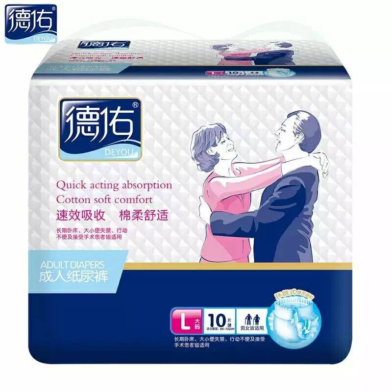 Deyou adult diapers large 10 pieces elderly disposable diapers non-pulling pants six packs