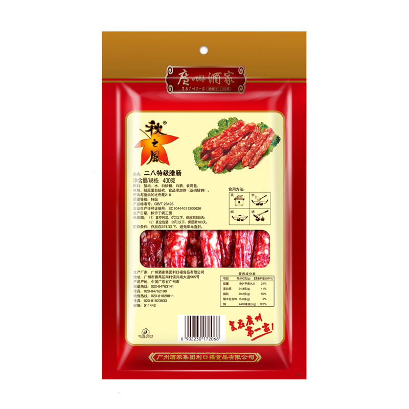 Guangzhou Wine Family Autumn Wind 28 Sausage 400g Bagged Plus Lean Sausage Guangdong Terfic wide sweet sausage sausages-Taobao
