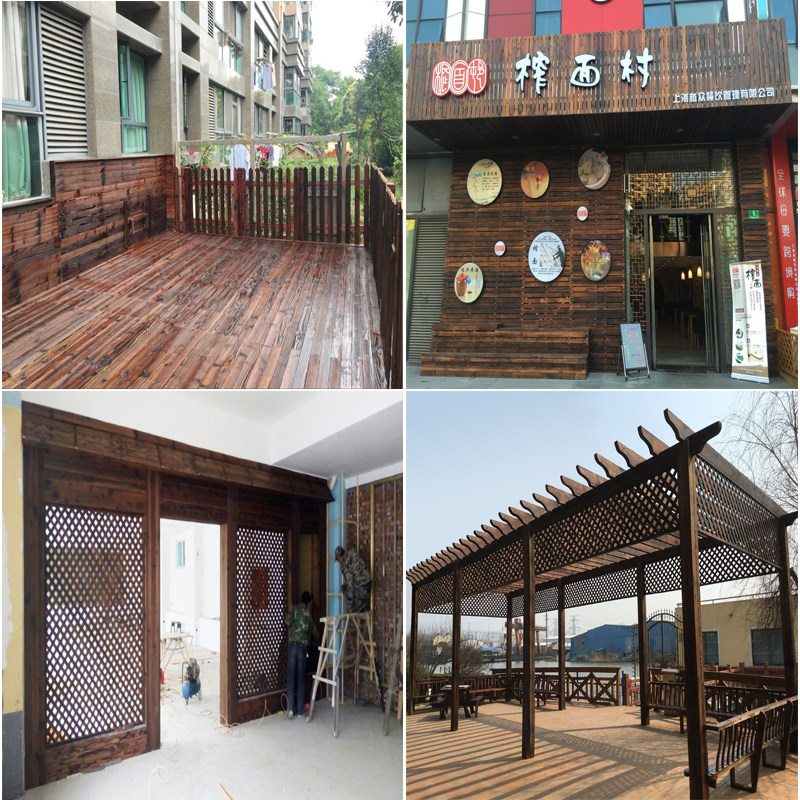 Carbonated Wood Outdoor Embalming Wood Flooring Charcoal Burning Wood Square Wood Plank Outdoor Floor Keel Wood Strip Plate Grape Racks