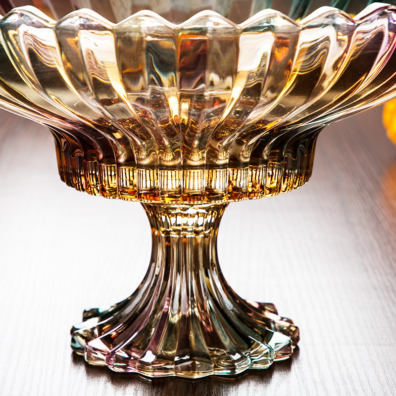 King size fruit plate Crystal glass creative high-legged dried fruit plate European creative modern living room fruit plate