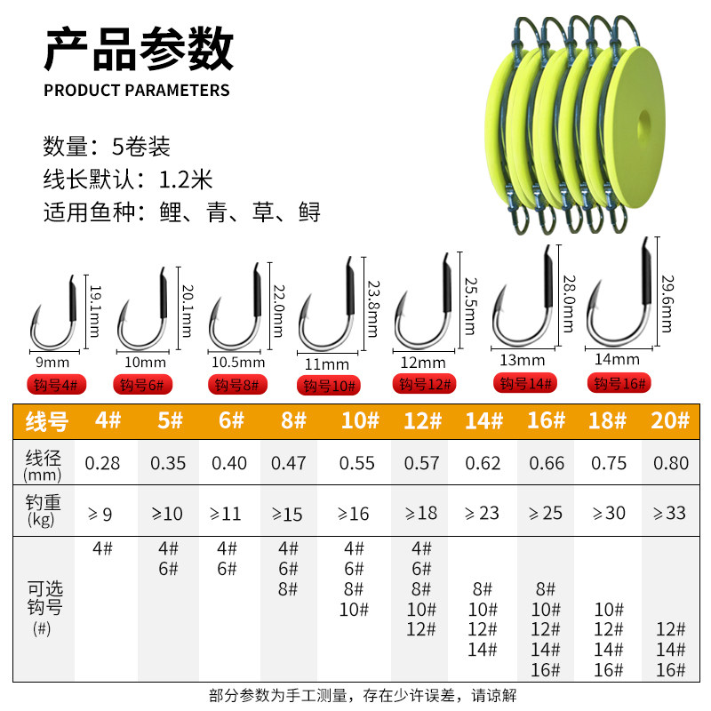 Green fish hook fit 4 Number of sub-lines (5 rolls of clothing) Green Fish Hook 5 Number of sublines (5 Mount) Green Fish Hook with 6 Number of Sub-lines (5 Clothing) Green Fish Hook Fit 8 Number Subline (5 Rolls Mounted) Green Fish Crochet Hook 10 Number