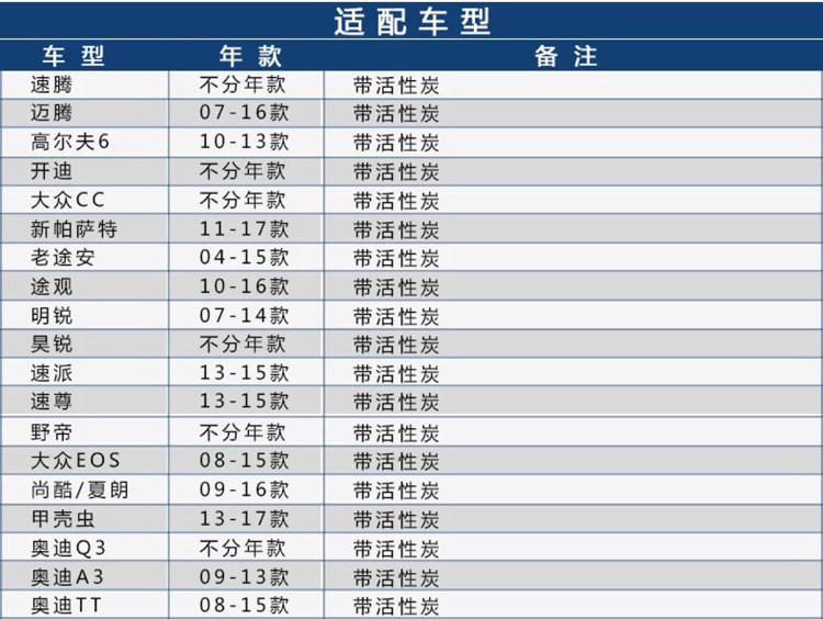 Adapt to Volkswagen Sengtang Tiguan Golf 6 Touran New Passat CC Octavia Haorui A3 air conditioning filter