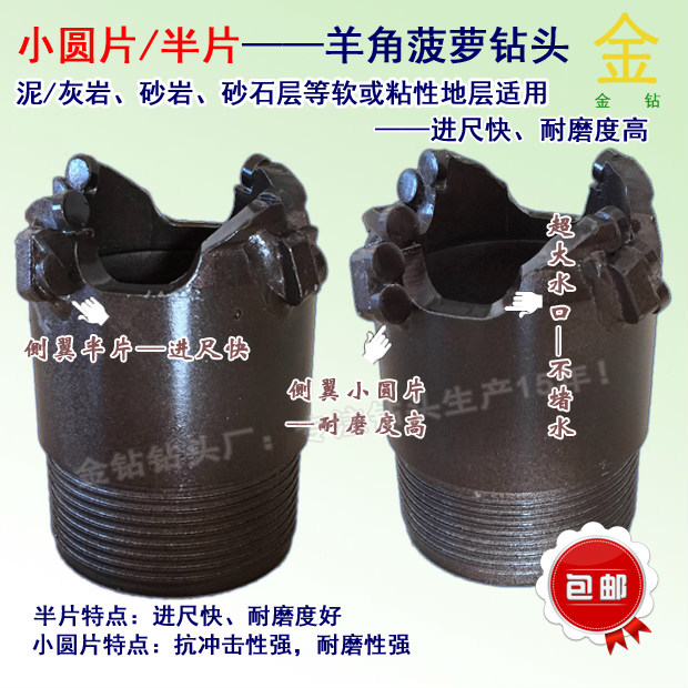 Gold diamond pineapple horn drill bit mudstone red sandstone slate and other water-blocking rock layers special composite piece drill bit